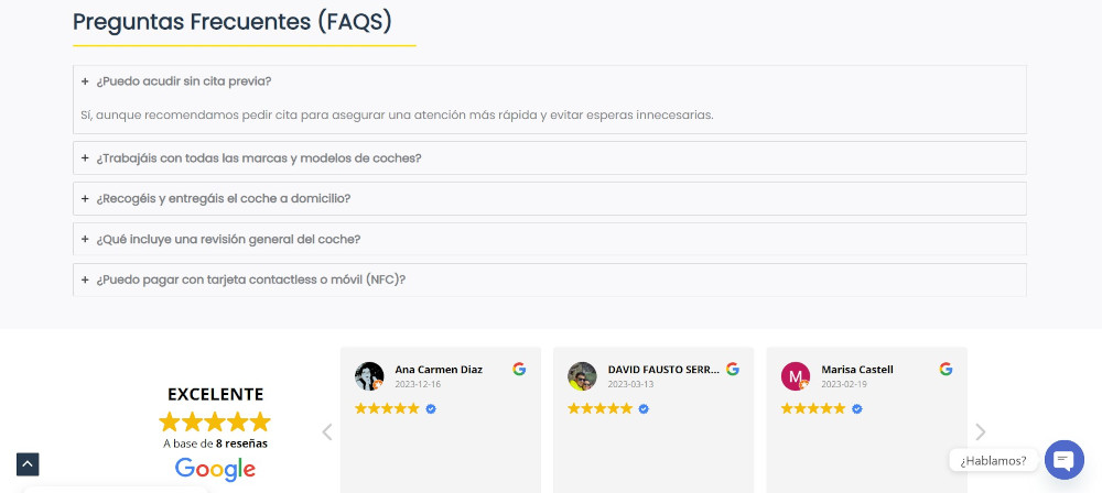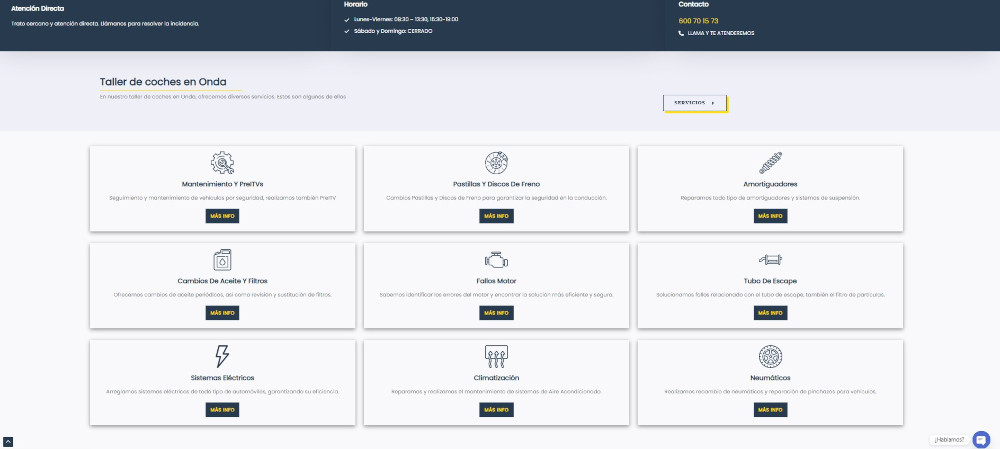 Escríbenos y tendremos un feedback para, según tus indicaciones, realizar una vista previa de lo que será la página de tu taller.